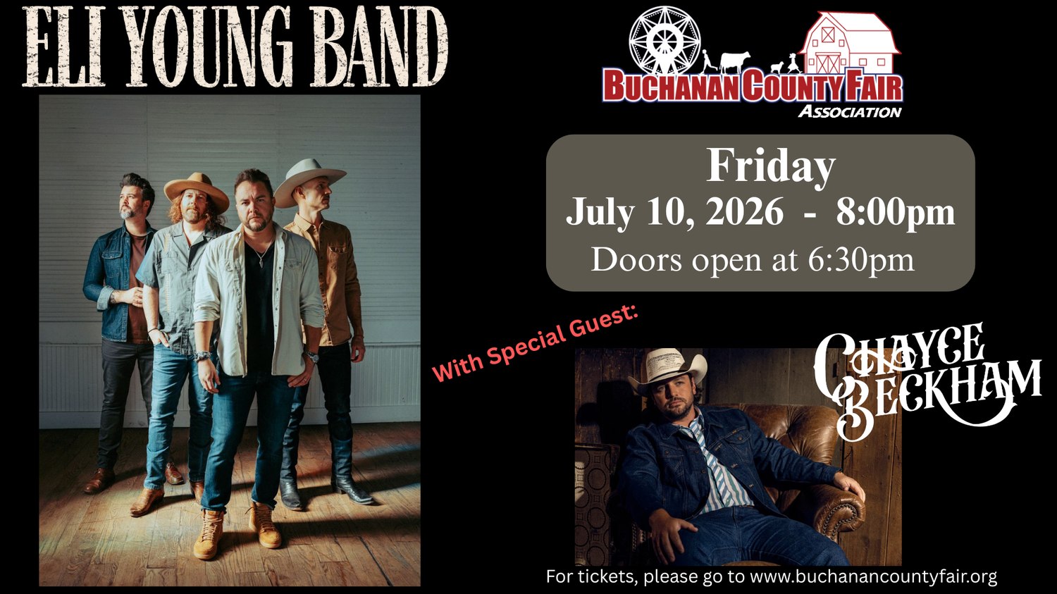 July 7-14, 2026 Grandstand Entertainment Tickets View All 2026 Entertainment Upcoming Events 10 July Friday Eli Young Band w/Chayce Beckham Grandstands 8:00 pm FacebookTwitter View Detail No event found! View All Fairground Events Fair Schedule 4-H Entertainment Vendors Volunteer Sponsor Facilities Camping Racing 2026 Top Sponsors ... coming soon!
